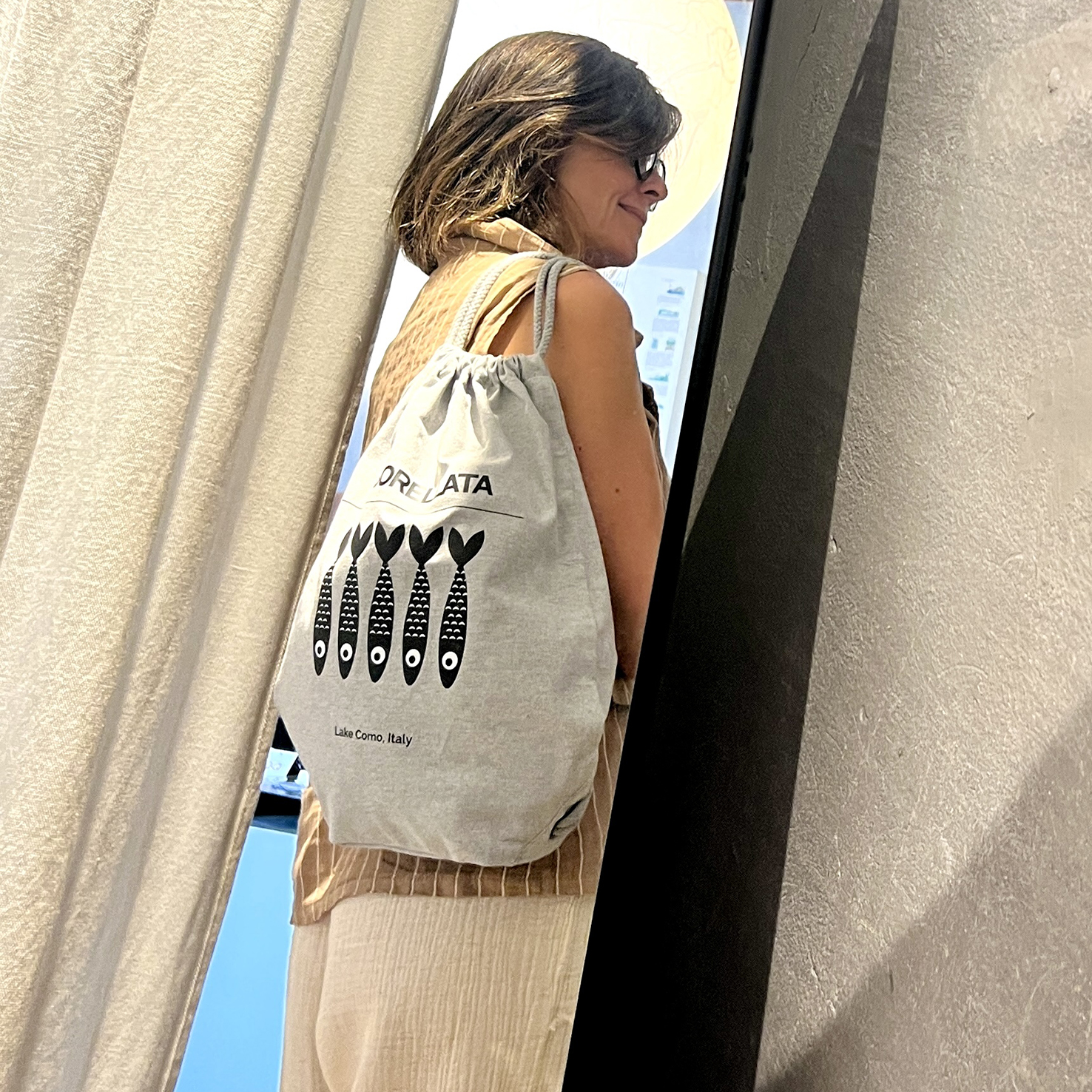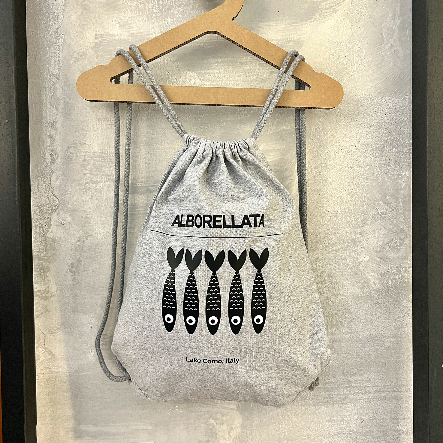 pratico zainetto portatutto – con lacci in corda, in robusto cotone bio – colore grigio